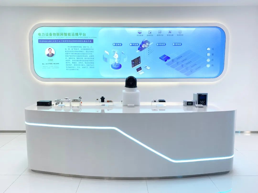 展廳核心區(qū)域展示了宇諾科技與浙江大學紀楊建教授團隊聯(lián)合研發(fā)的電力設備物聯(lián)網(wǎng)智能運維平臺的介紹說明,參觀者可以在展廳大屏上操作演示系統(tǒng),實地感受平臺的核心功能。